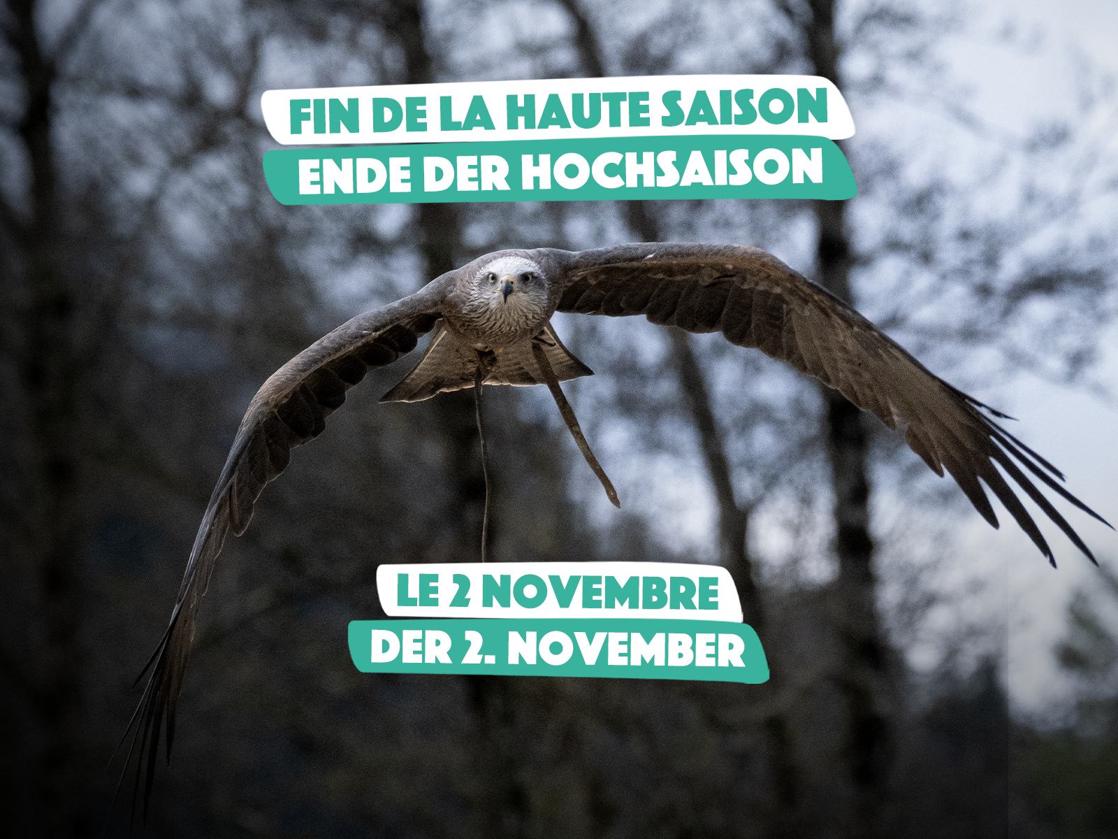 Nutzt also die Zeit bis dahin, um unsere beeindruckenden Greifvögel bei ihrer Flugpräsentation zu bewundern und geniesst noch die verlängerten Öffnungszeiten der Hauptsaison!