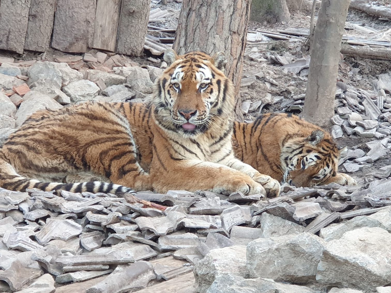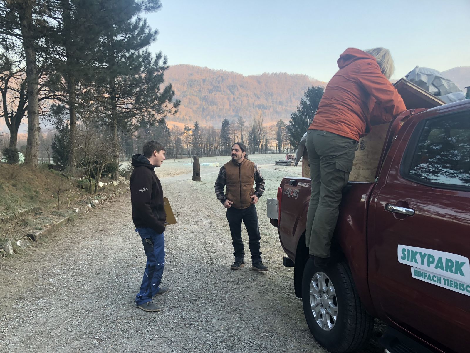 Innerhalb von zwei Tagen wurden zusammen mit dem slowenischen Team bauliche Sofortmassnahmen umgesetzt, um den Tigern mehr Fläche und mehr Lebensqualität zu bieten. «Die Anlage war wenig strukturiert. Es waren etwa viele Dachziegel verbaut, sodass die Tiger kaum drauf laufen konnten», erklärt Tobias Blaha. Mit Kies, Holzschnitzel und Hochsitzen wurde die Anlage terrassenartig ausgebaut. Zudem wurden die Tiger medizinisch untersucht, ihr Futter analysiert und Tipps für Beschäftigungen und Abwechslung für die Seniorentiere mitgegeben.