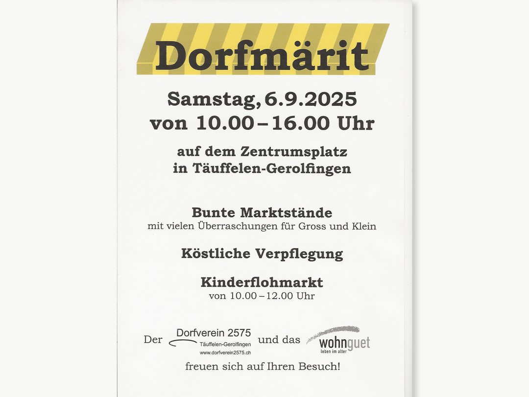 Besuchen Sie diesen Samstag, den 6. September, von 10 bis 16 Uhr den Dorfmärit von Täuffelen!