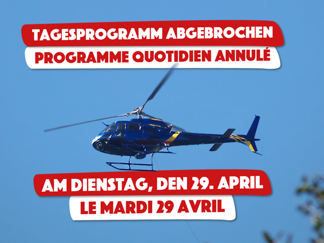 Am Dienstag, den 29. April, kann aufgrund eines Baumtransports per Hubschrauber keine der Aktivitäten aus unserem Tagesprogramm stattfinden. Um unsere Tiere zu schützen, werden einige von ihnen in den Innenanlagen bleiben und für die Besucher leider nicht zu sehen sein.